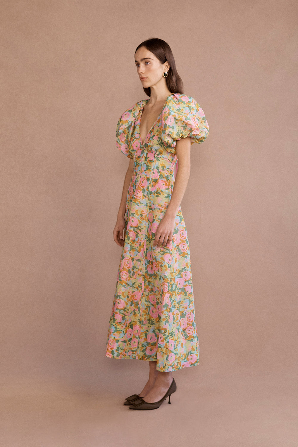 Lovaan’s Iris print is reimagined from the Abraham silk archive of 1940s Zurich - a collection celebrated for its painterly florals and pursuit of perfection.
