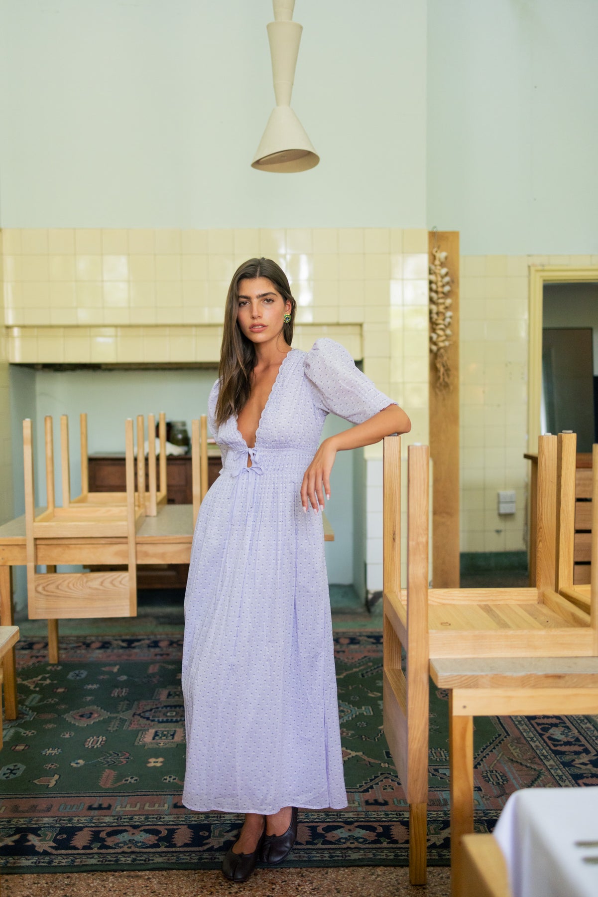 Radiating romance, the Boehm dress in lilac floral gracefully flatters the figure. Its standout feature lies in the exquisite pin-tucking details on the bodice and cuffs. Style yours with a touch of shimmer.