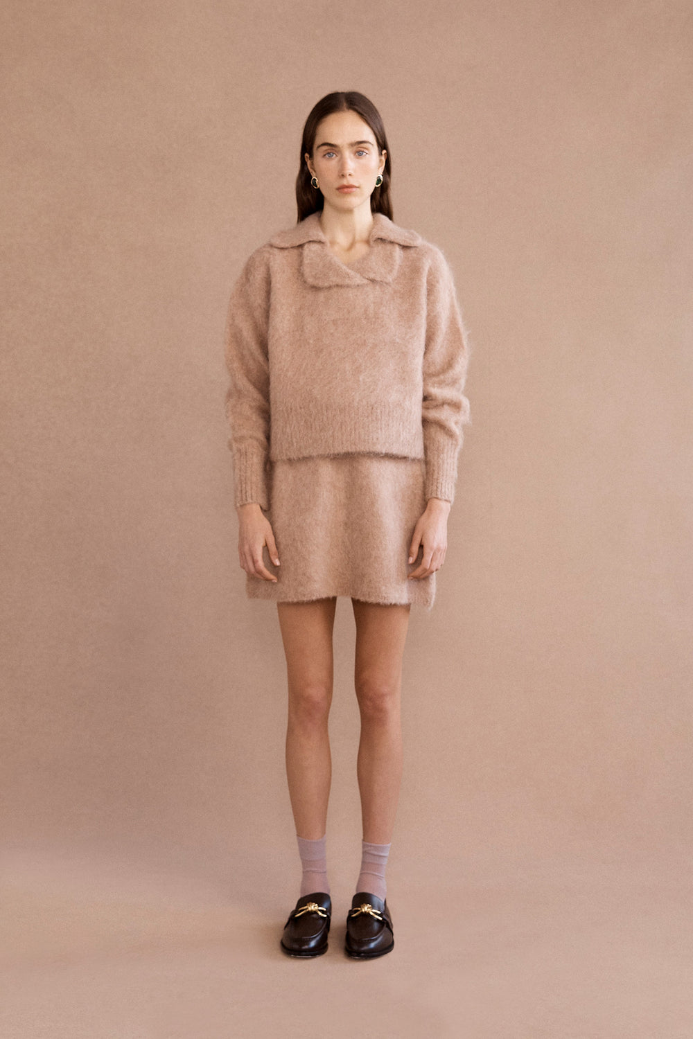 Made from a luxurious alpaca wool blend, the Chloe skirt in hazelnut is a relaxed A-line fit. A ribbed, elasticated waistband makes for an easy-wearing piece. Pair it with the Chloe jumper for an elegant everyday ensemble.
